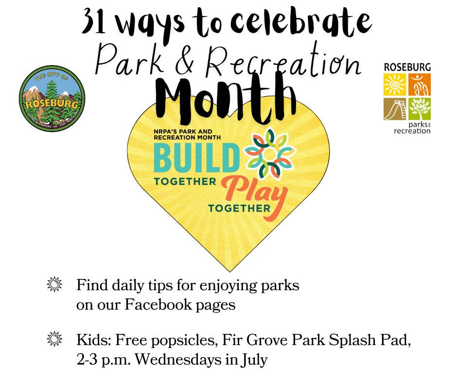 For more ideas, check out Roseburg Parks and Recreation’s Facebook page or City Administration’s Facebook page each day. And get out there!