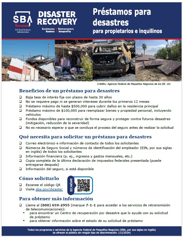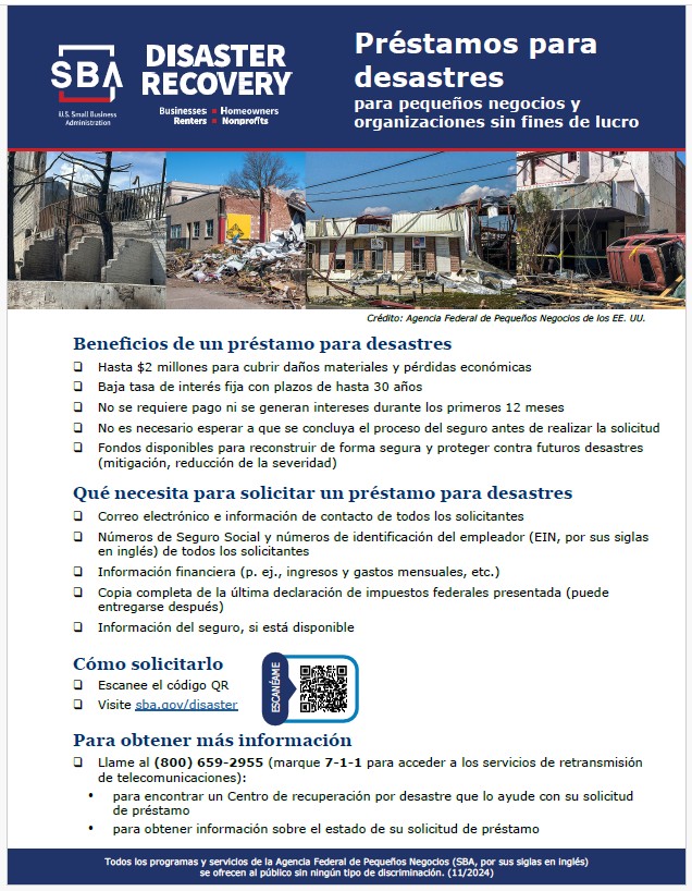 “When disasters strike, SBA’s Disaster Loan Outreach Centers perform an important role by assisting small businesses and their communities,” said Chris Stallings, associate administrator of the Office of Disaster Recovery and Resilience at the U.S. Small Business Administration. “At these centers, our SBA specialists help business owners and residents apply for disaster loans and learn about the full range of programs available to support their recovery.”