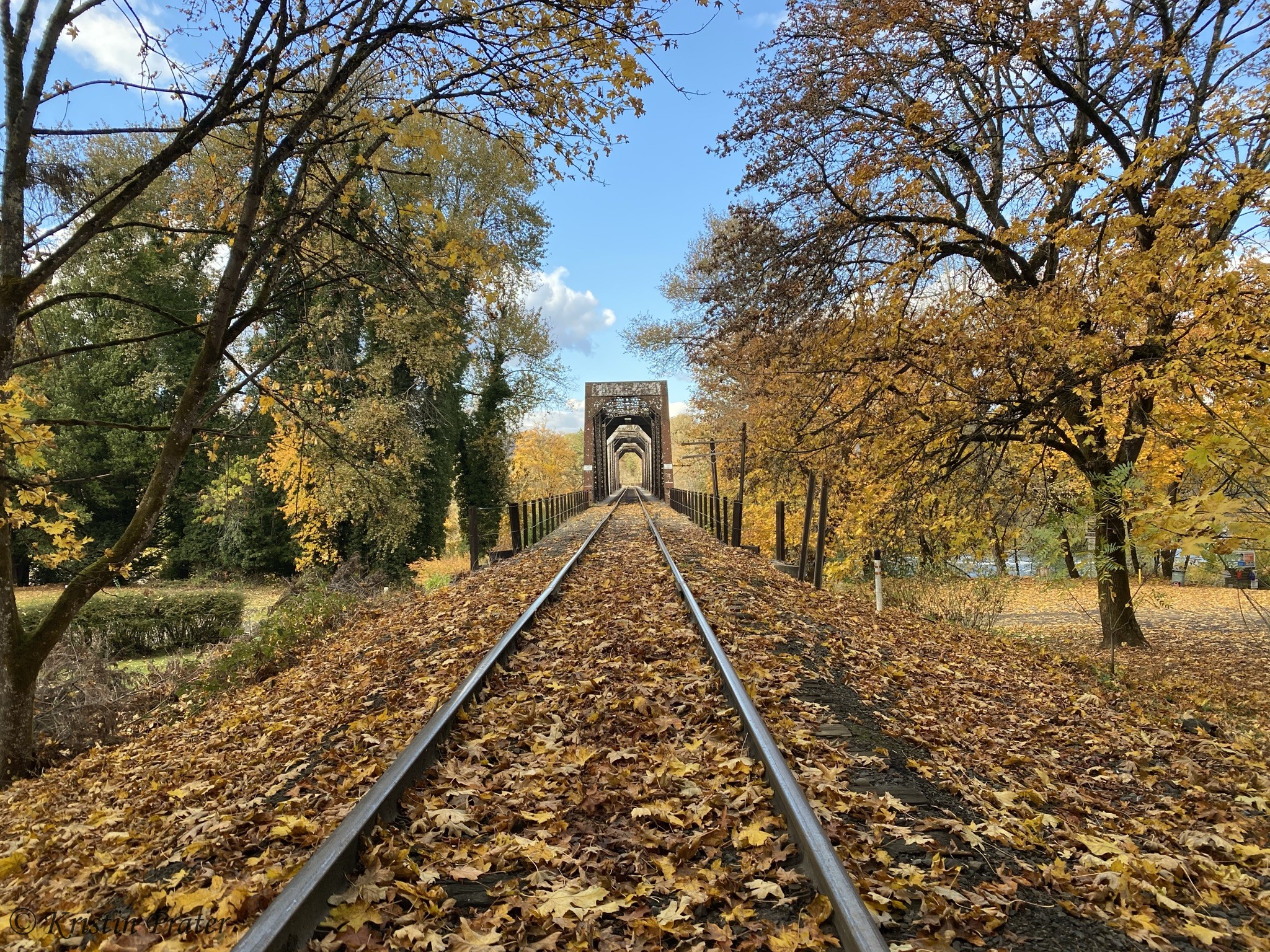 John P. Amacher Park, Winchester: "Train bridge in fall"