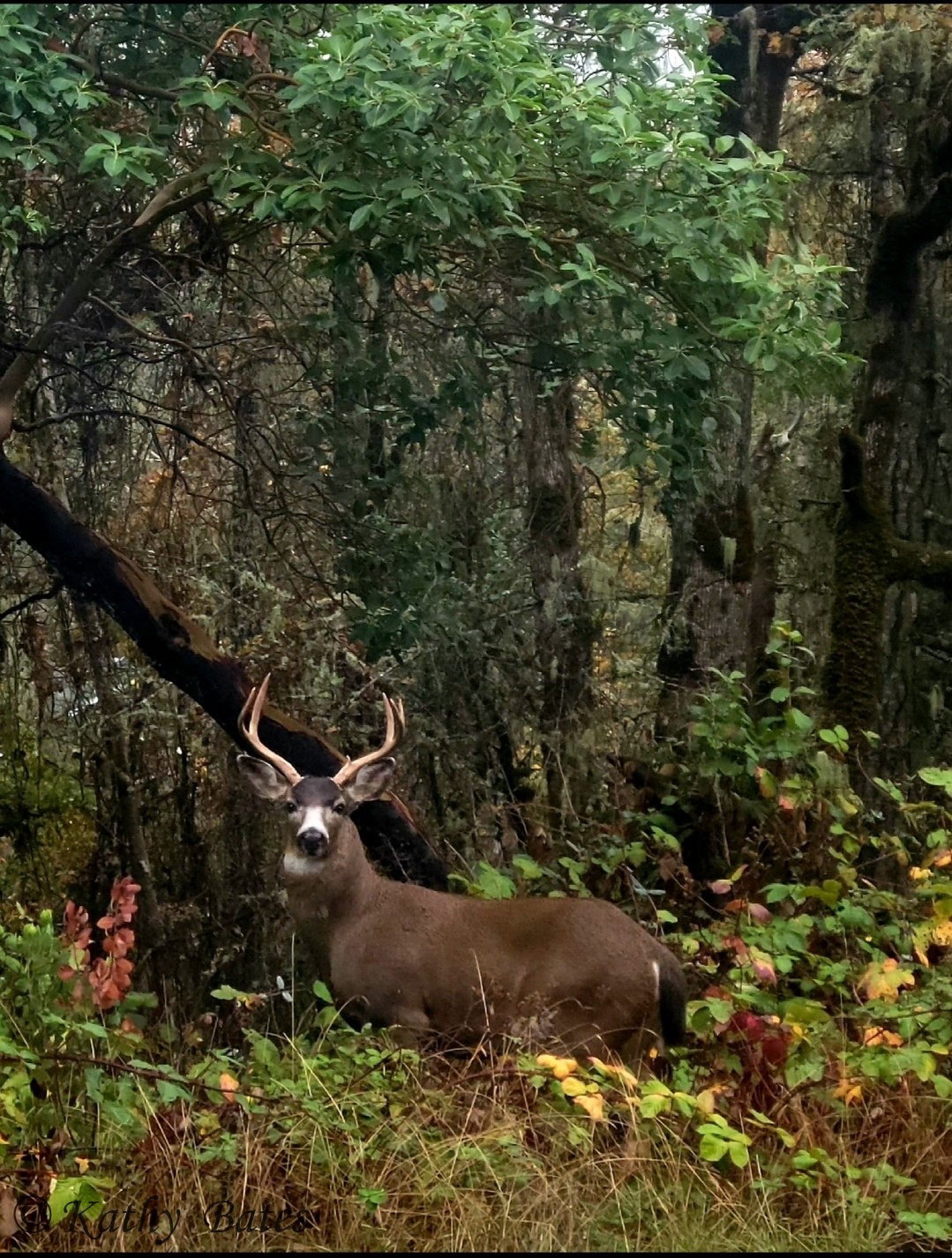 End of our driveway!: "A very handsome buck and I had a stare down! He won so I could take his picture!"