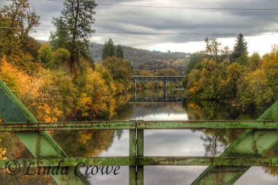 Stewart Park bridge over South Umpqua river: "Fall reflections on river"