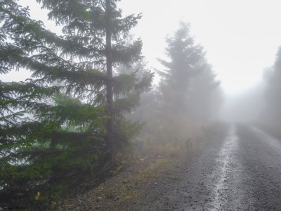 Touchstone Lane (Out in Melrose): "Was running up Touchstone Lane, and found this pretty picture opportunity with the fog. Evergreen trees combined with the fog created a nice aesthetic to look at."