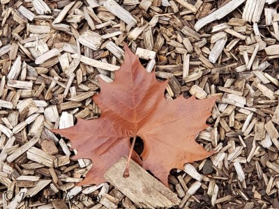 River Forks Park: "A single fallen leaf. 'LEAF ME ALONE'"