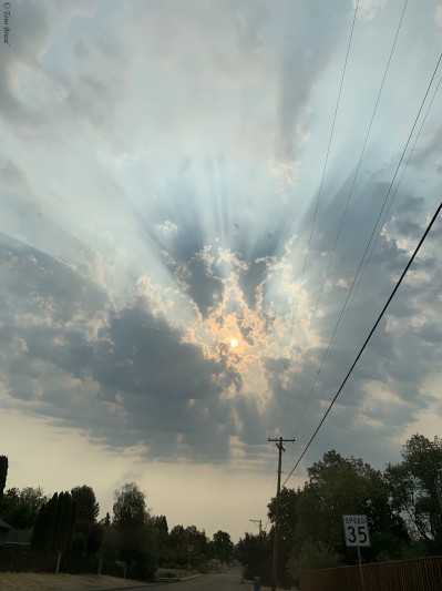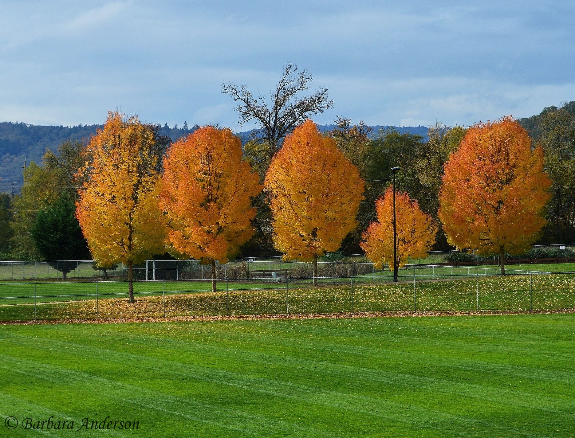 Sunshine Park, Roseburg - "Brilliantly golden leaves on a line of trees."