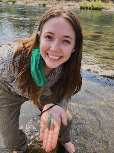 Whistler’s Bend - "Autumn Mann excited about finding a blue crawfish in the North Umpqua River at Whistler’s Bend County Park"