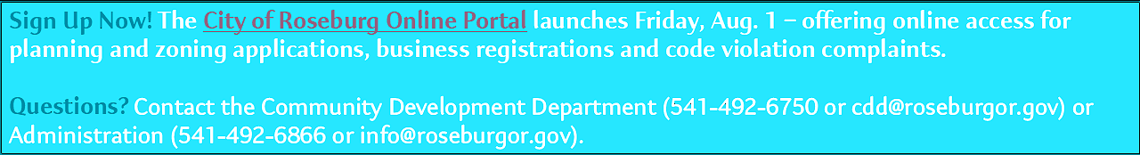 APPLY ONLINE FOR COMMUNITY DEVELOPMENT SERVICES: www.roseburgor.portal.opengov.com