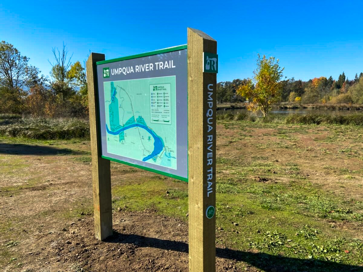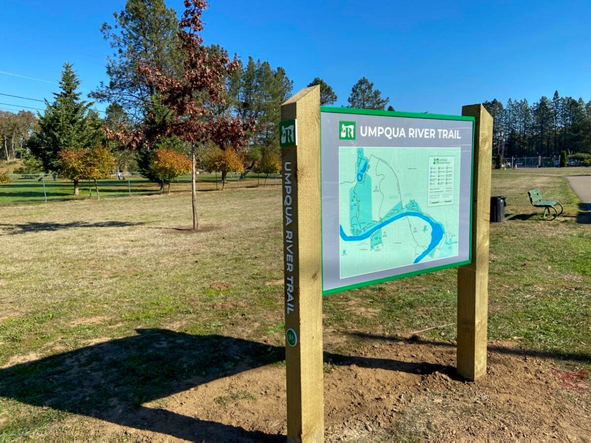 The City of Roseburg has partnered with Blue Zones Project Umpqua to create wayfinding signage along the multi-use path in Stewart Park. The new signage will help users of the pathway find their way around the park as well as the connecting pathways in the area. The new signage was installed in late October 2020.