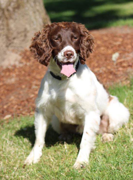 Trapper is a purebred Spring Spaniel from Ireland and has spent nearly five years as a drug detection canine for the Roseburg Police Department. Trapper alerts to the odor of methamphetamine, cocaine, and heroin. He alerts by putting his nose as close as possible to the source of the drug odor. Trapper's alerts have led to the seizure of well over 100 pounds of drugs and over $100,000 in drug money. Trapper's alerts have also led to hundreds of arrests.