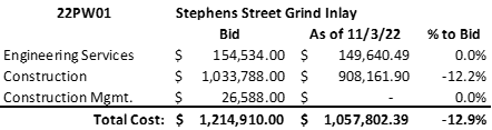 Staff is currently working with the consultant to complete a survey of city streets and develop a current pavement condition index for all street segments.