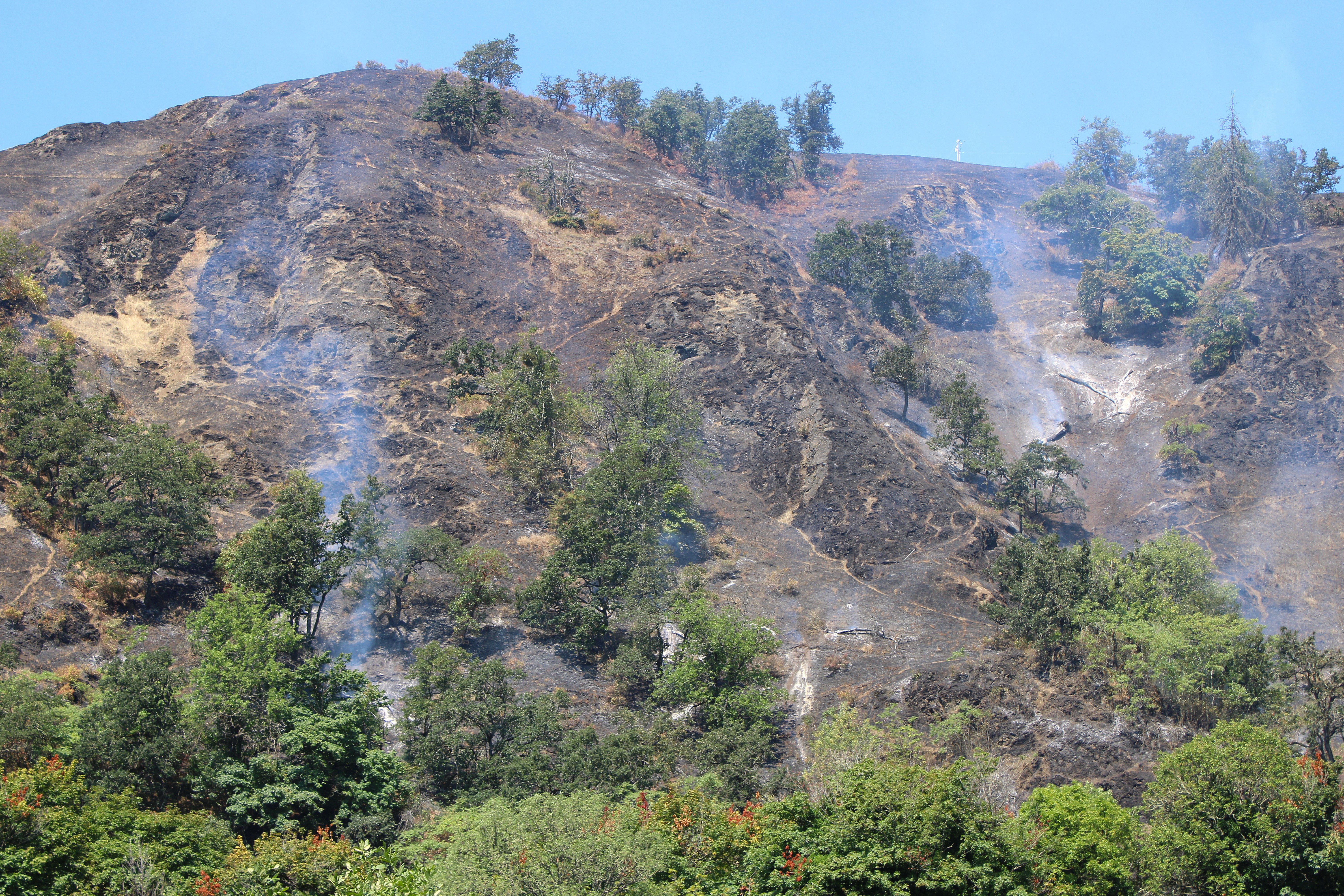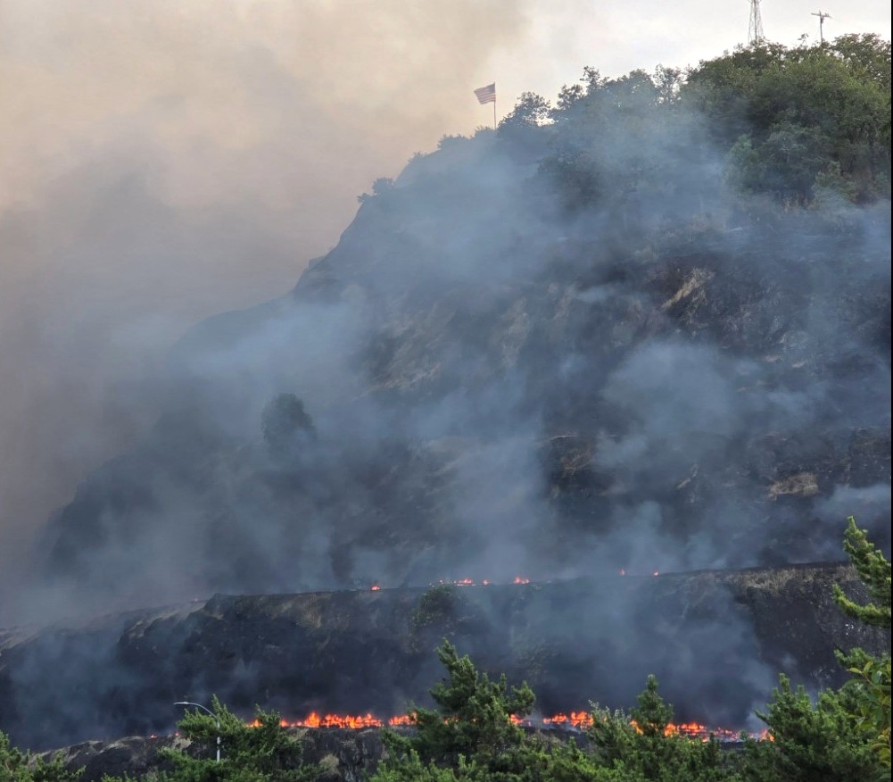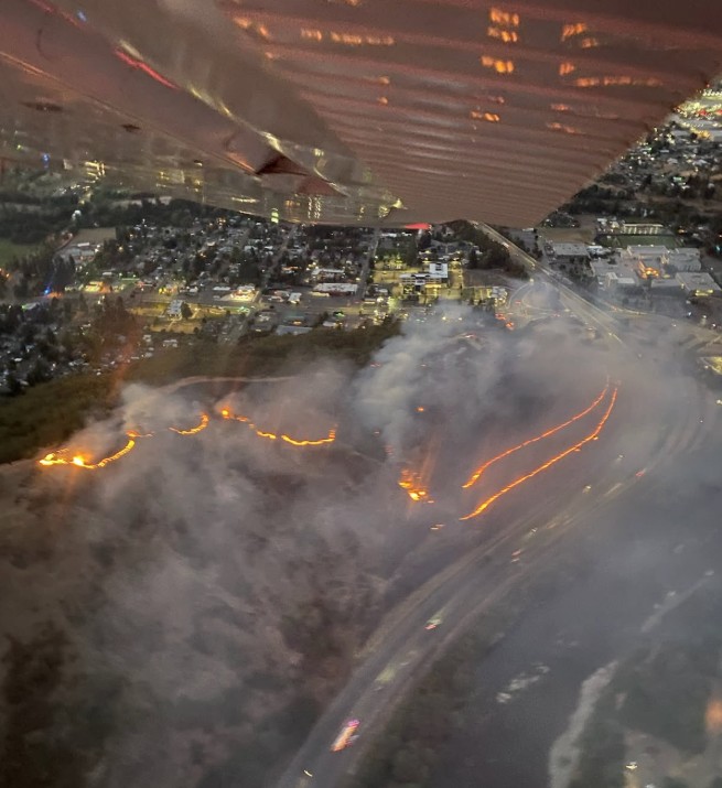 At 6:30 p.m. on July 31, 2025, crews from the Roseburg Fire Department, Douglas Forest Protective Association (DFPA), Central Douglas Fire & Rescue, Roseburg Police Department, Oregon Department of Transportation, and Pacific Power responded to a reported fire on the hillside near Interstate 5, Milepost 124 Southbound.