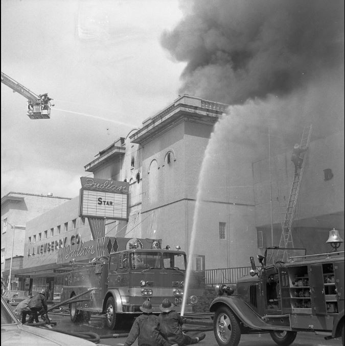 In pictures posted here, the 1934 engine is shown in image one to the left of the boat in front of City Hall. In image two and three, you will see the engine converted into a salvage vehicle while in use at a commercial structure fire at the Indian Theater in June of 1969.