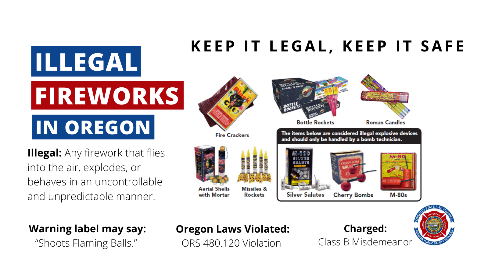ROSEBURG, OR – The Roseburg Fire Department would like to remind everyone to “keep it legal and keep it safe” when using fireworks this 4th of July – especially amid the current heat wave and dry conditions.