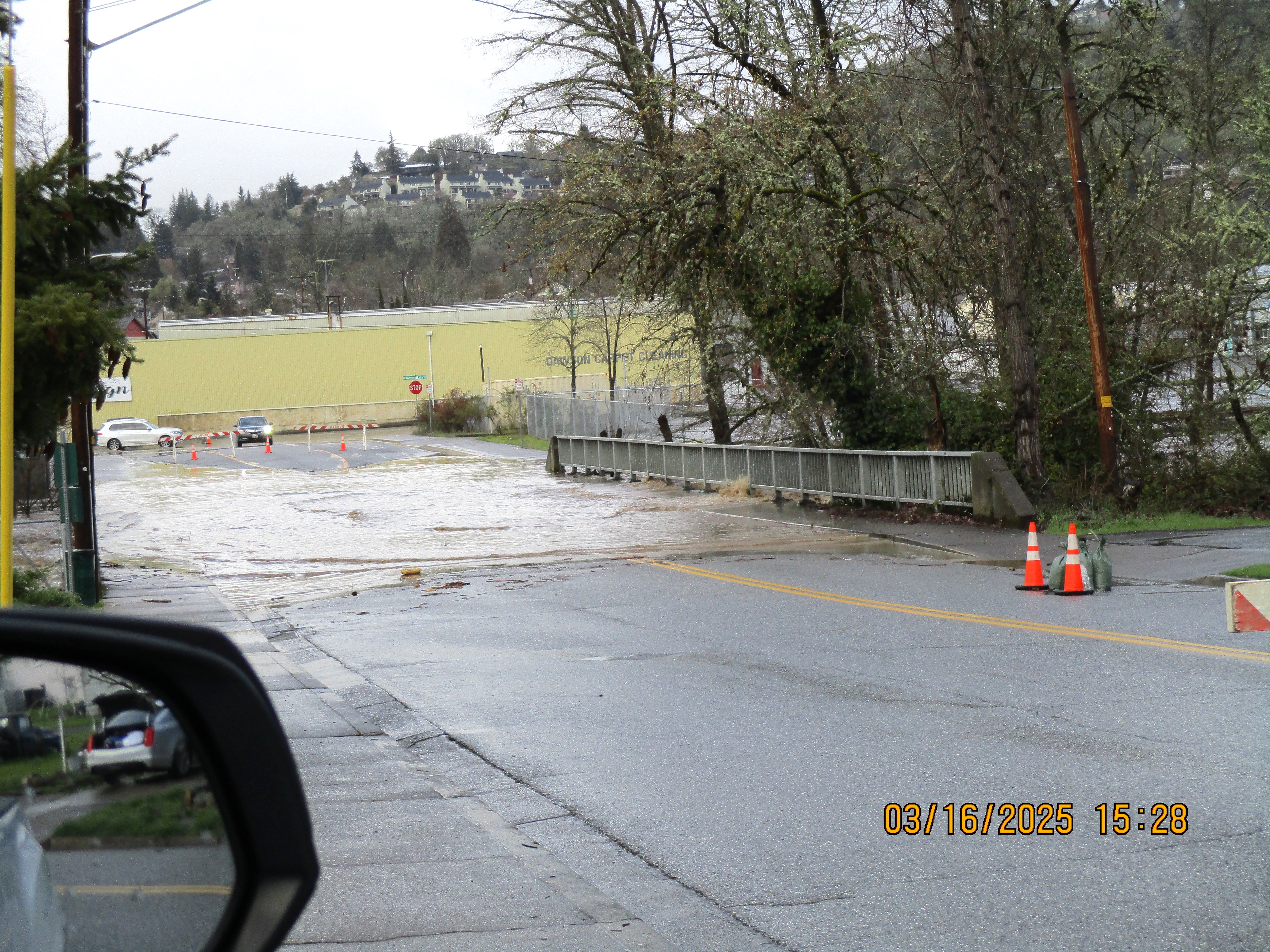 ROSEBURG, Ore. – City crews continue cleanup and assessment after a significant storm on Sunday, March 16, hit Roseburg with record rainfall, periods of snow and widespread flooding that included record-high waters in Deer Creek.