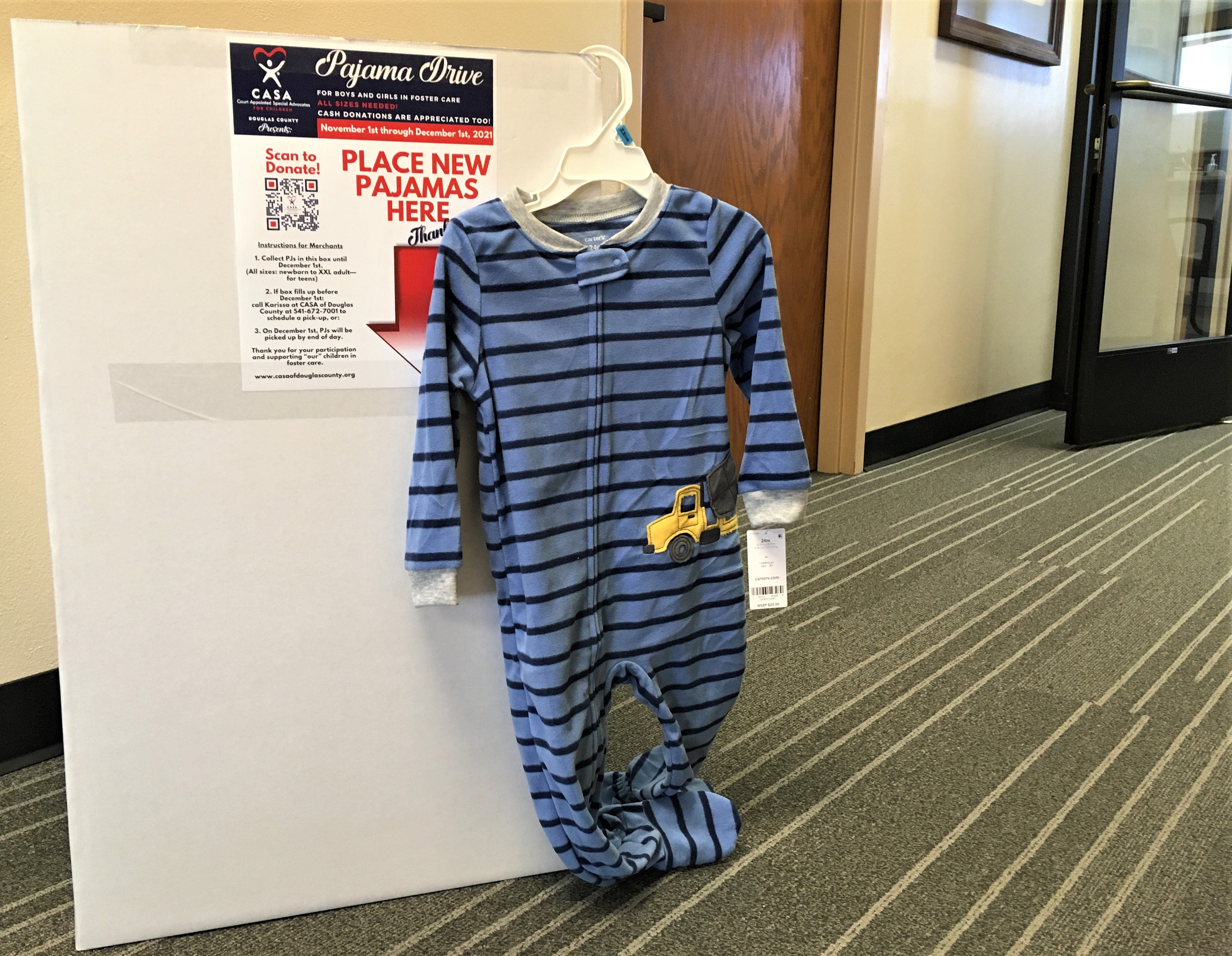 City employees and several residents dropped off pajamas for kids from infants to older teens at pajama drive boxes inside Roseburg City Hall, Roseburg Public Safety Center and Roseburg Public Library. A CASA representative retrieved the boxes last week.