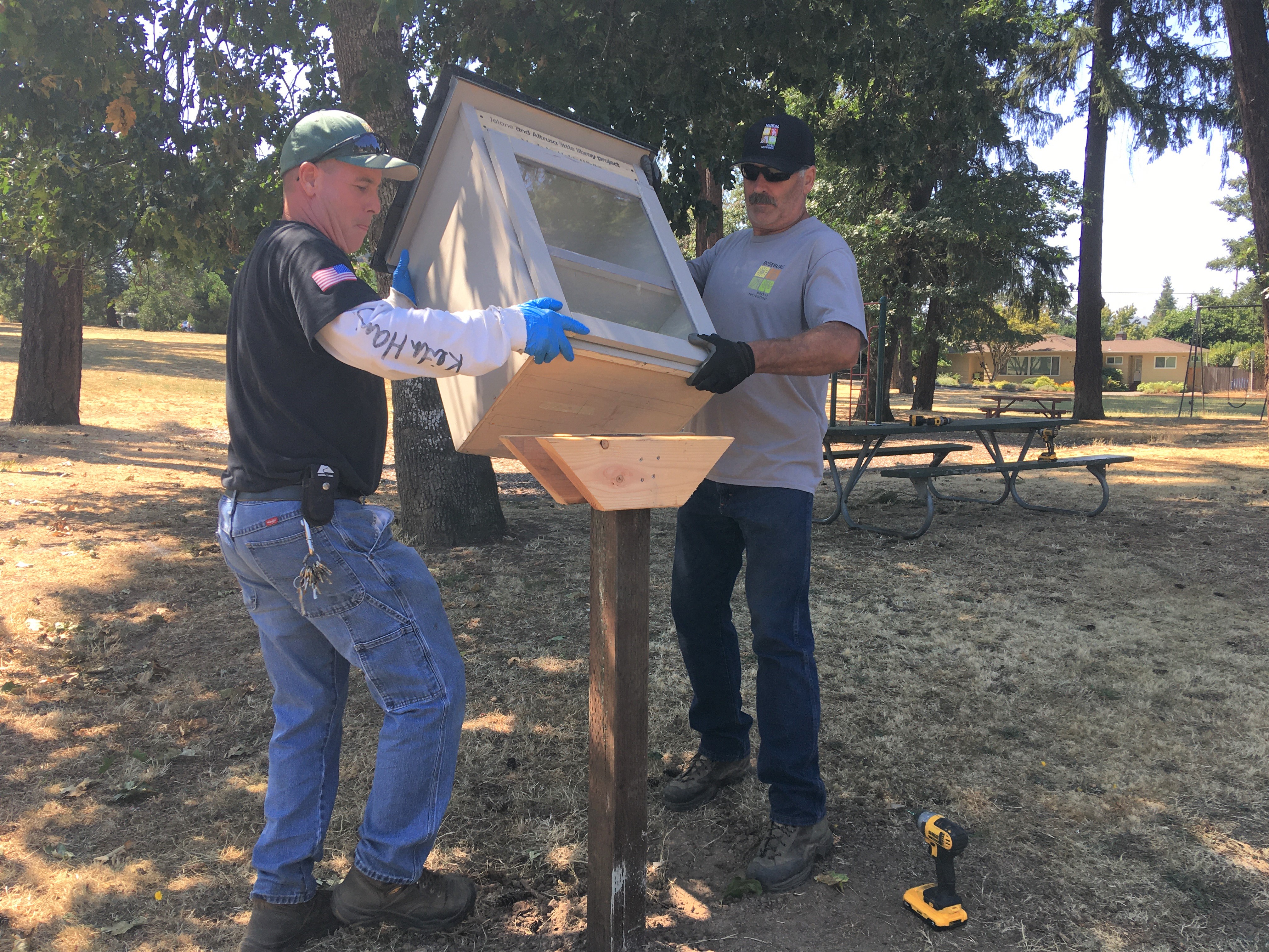 The free community libraries are being set up in Brown, Commercial Street, Eastwood, Laurelwood and Thompson parks, said Roseburg Park Program Manager Val Ligon. Two were installed at Brown and Laurelwood parks by a Roseburg Parks and Recreation crew on Thursday, Aug. 25. The others are expected to be installed by the end of August.