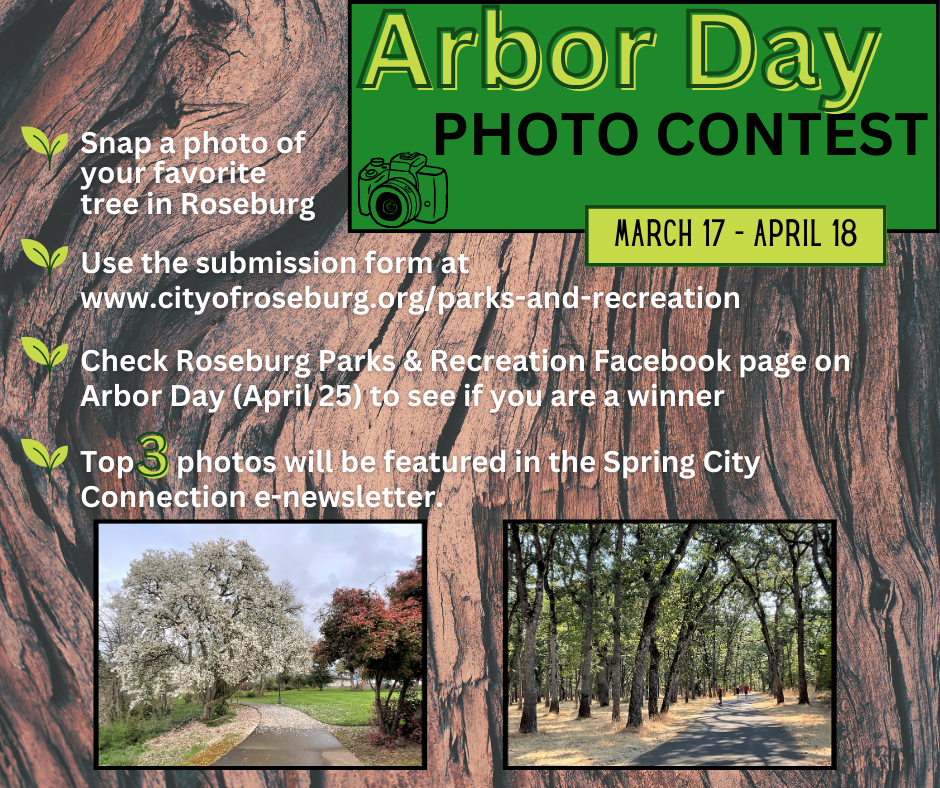 ROSEBURG, Ore. – Roseburg Parks and Recreation invites you to enter the 2025 Arbor Day Photo Contest starting Monday, March 17.