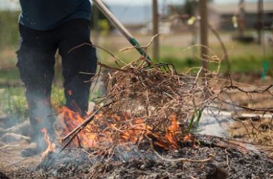 Prohibited items include trash; standing berry vines, grass and weeds; paper, wood or plastics; tires; construction material; and material from lot clearing. Burning may not be done on vacant lots or someone else’s property. Fires must be monitored by a competent adult and extinguished prior to nightfall. Tools to control or extinguish the fire must be on-site whenever material is burning.