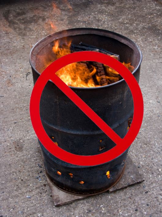 Burn barrels are not allowed inside city limits. Anyone burning trash or burning without a permit may be subject to a fine and/or legal action. Also, due diligence must be exercised while burning, even with a permit, as fire can quickly get out of control and the person responsible for the fire may be subject to fines, legal action or restitution.