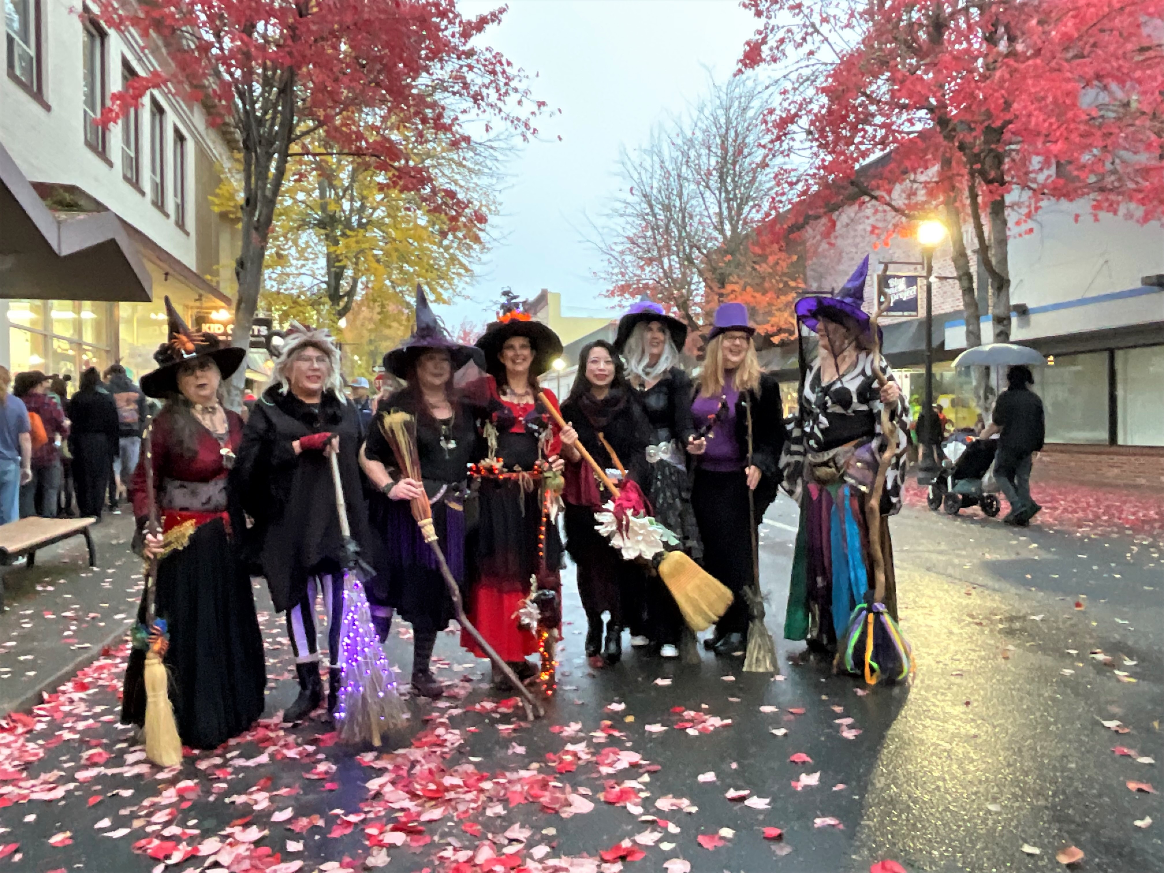 Dancers dress to suit their “witchy” personalities, with many in traditional black. Fourteen have practiced this fall, but some will volunteer for “scare duty” at Roseburg Fright Club’s haunted house inside Roseburg Elks Lodge, waiting at the end of Jackson Street. Yet a few extra witches always seem to mysteriously join the street performance, Ingeroi said.