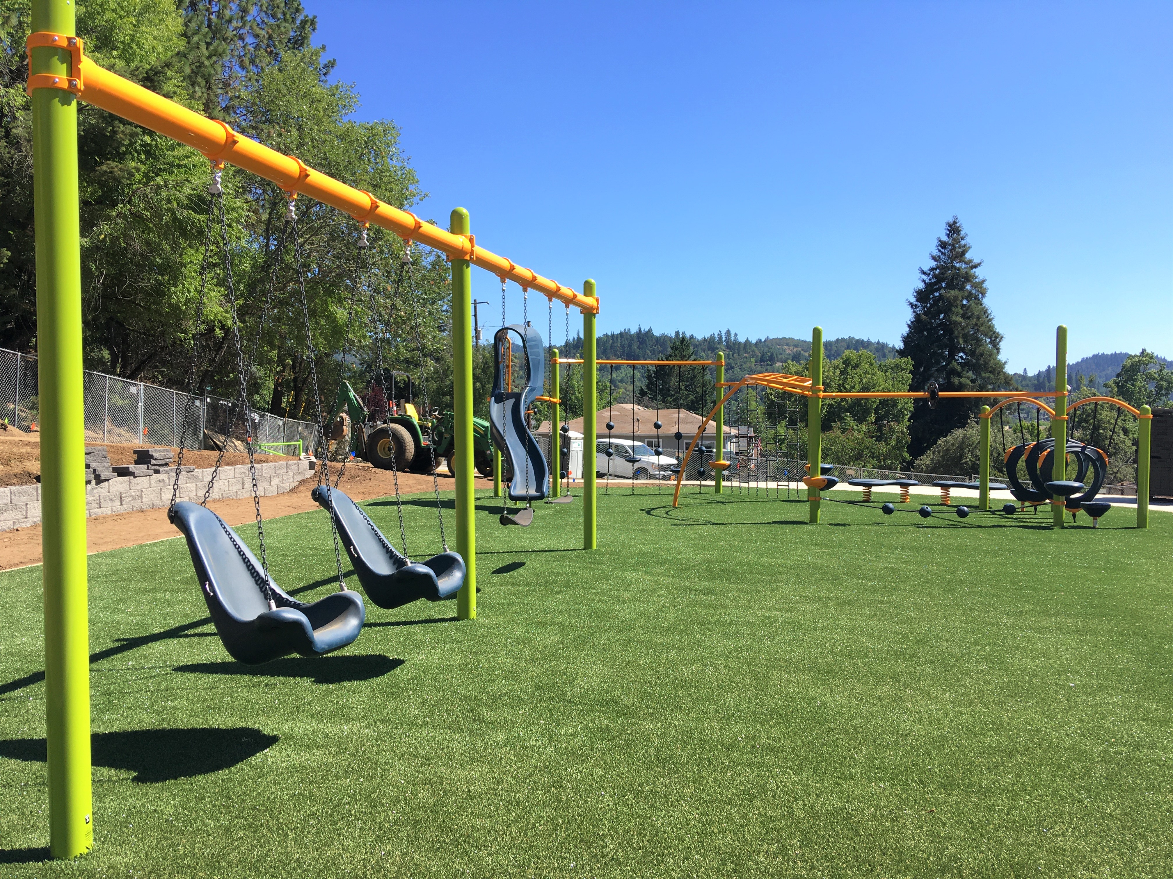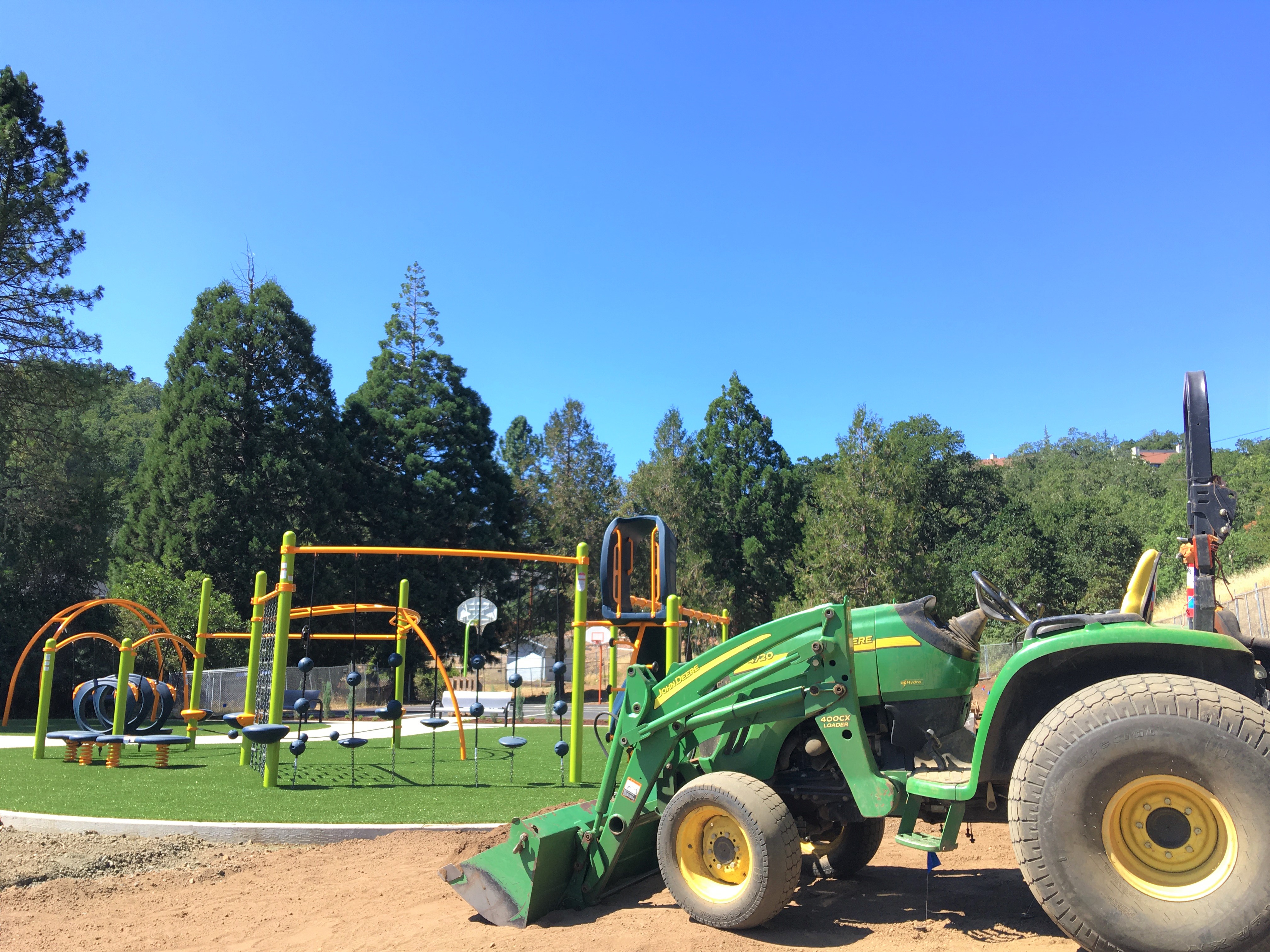 Tractor rests near new playground at Beulah Park July 15, 2021.
