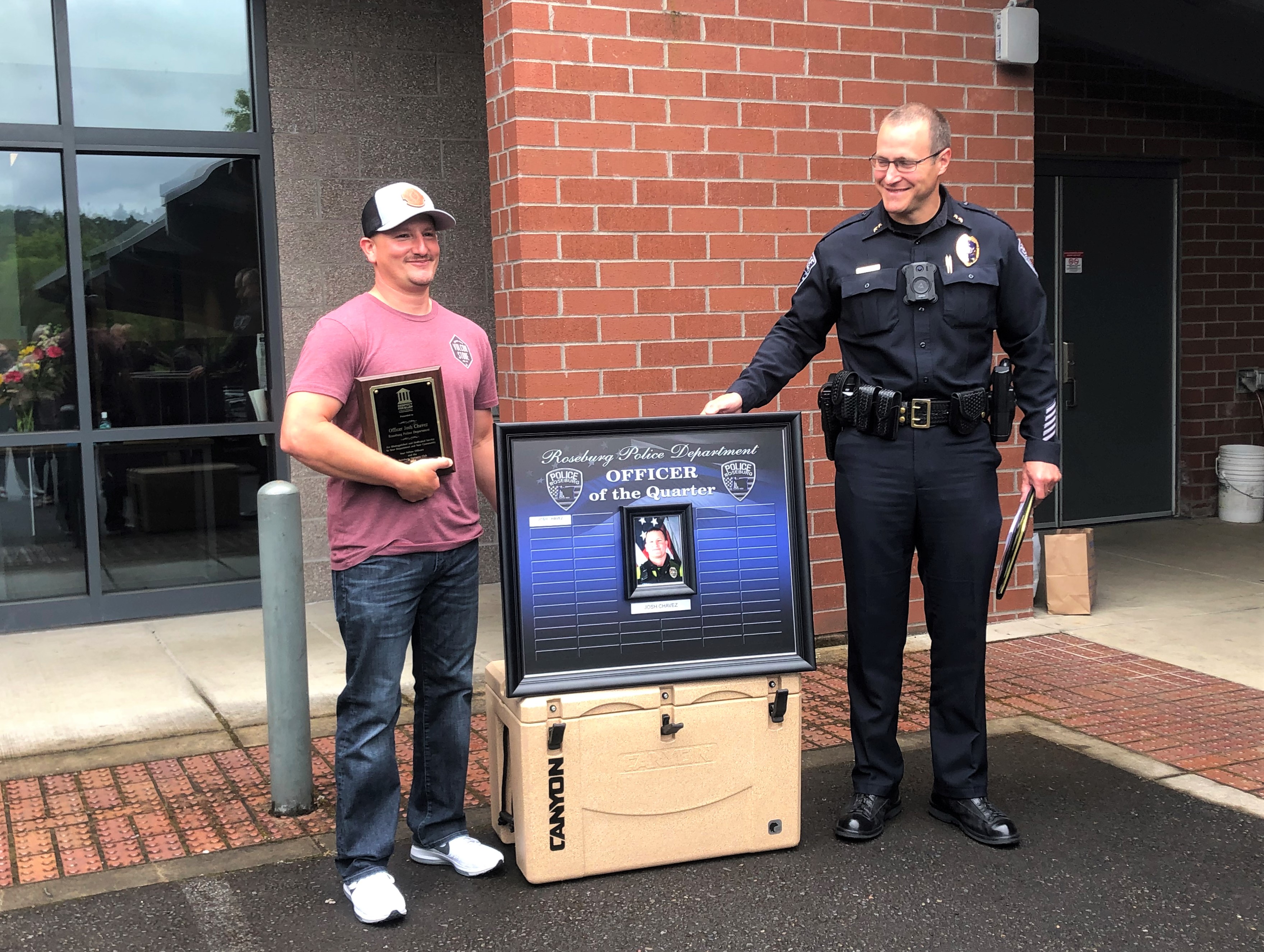 “Every year, there are many officers who stand out for their outstanding performance - making it very difficult to select a single officer for recognition. With that said, one really stood out this year among our outstanding police officers and employees in the Roseburg Police Department,” Chief Klopfenstein said at the BBQ outside the Roseburg Public Safety Center.