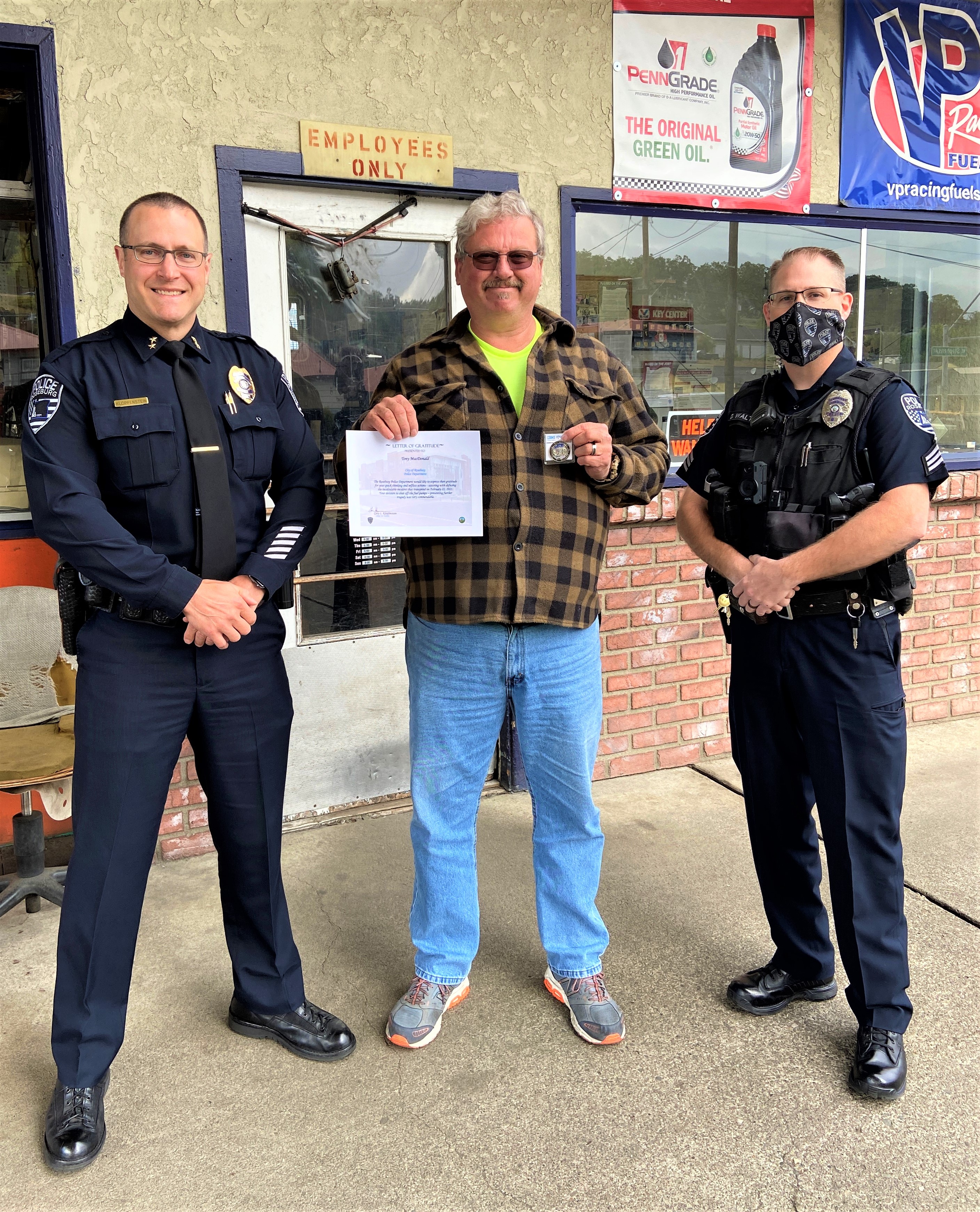 Chief Klopfenstein additionally met with Tony MacDonald and presented him with a letter of gratitude and a department “challenge coin” for his actions.