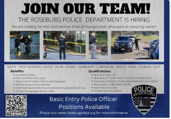 Learn more about the Roseburg Police Department here: www.cityofroseburg.org/departments/police