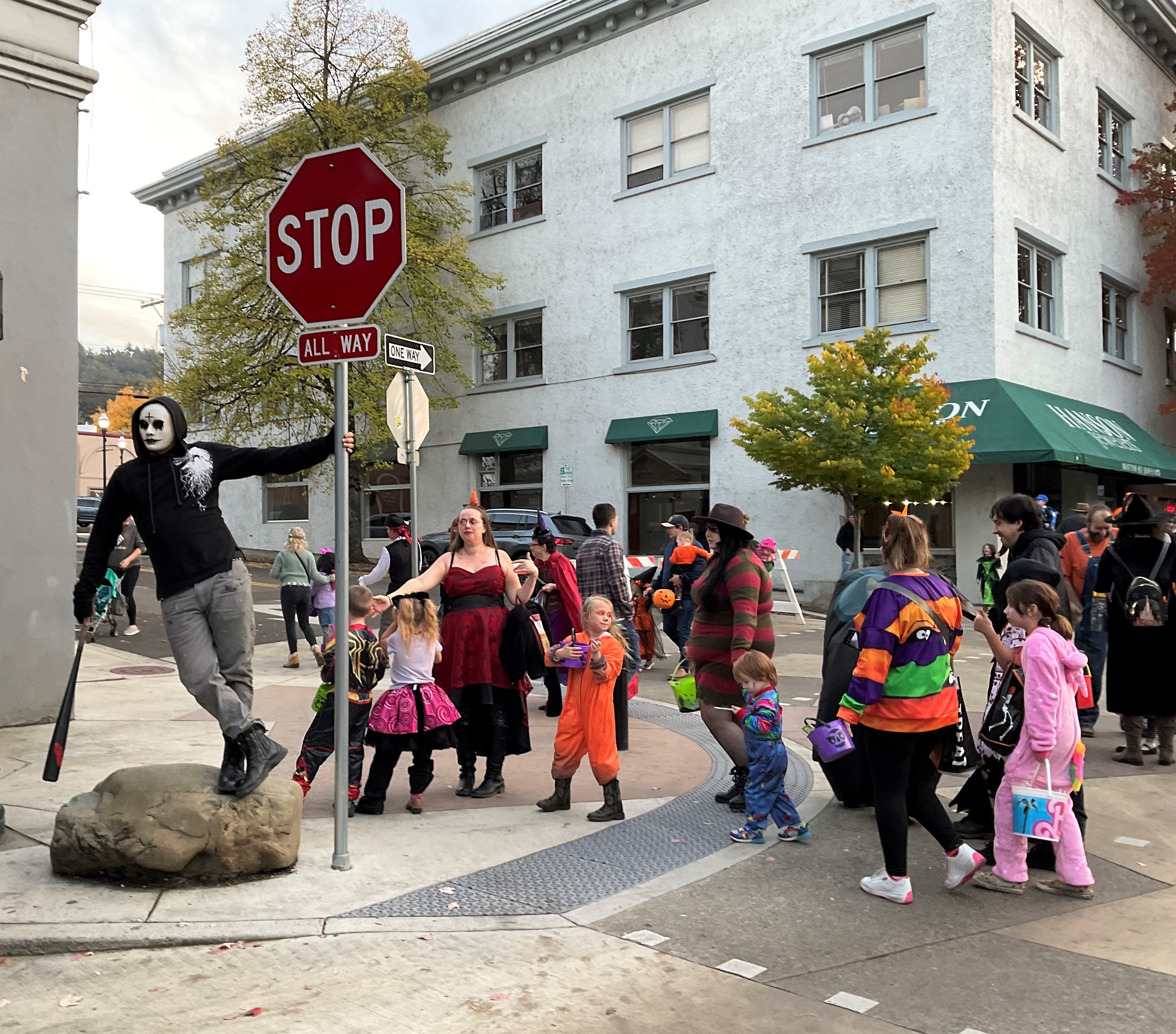 The parade is being organized by former City Councilor Stacey Crowe to promote downtown Roseburg and fun – as well as to give businesses a way to thank the community by giving out candy to trick-or-treaters. Crowe has been involved with the event since shortly after moving to Roseburg in the 1990s.