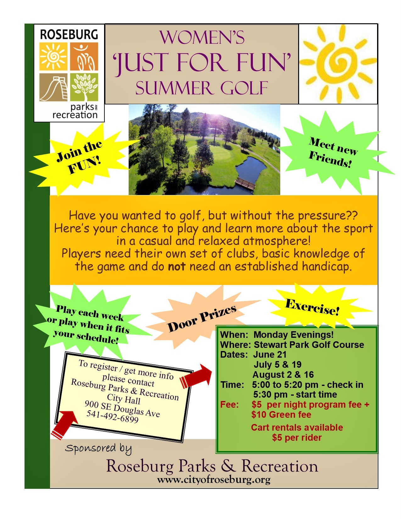 ROSEBURG, OR – Roseburg Parks and Recreation Department invites women golfers to join a “Just for Fun” golf program on Monday nights this summer.