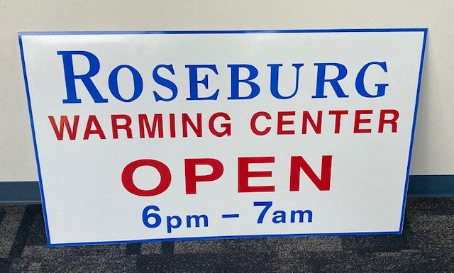 ROSEBURG – An overnight warming shelter will remain open in Roseburg through Friday night, when the National Weather Service predicts a low temperature of 29 degrees.