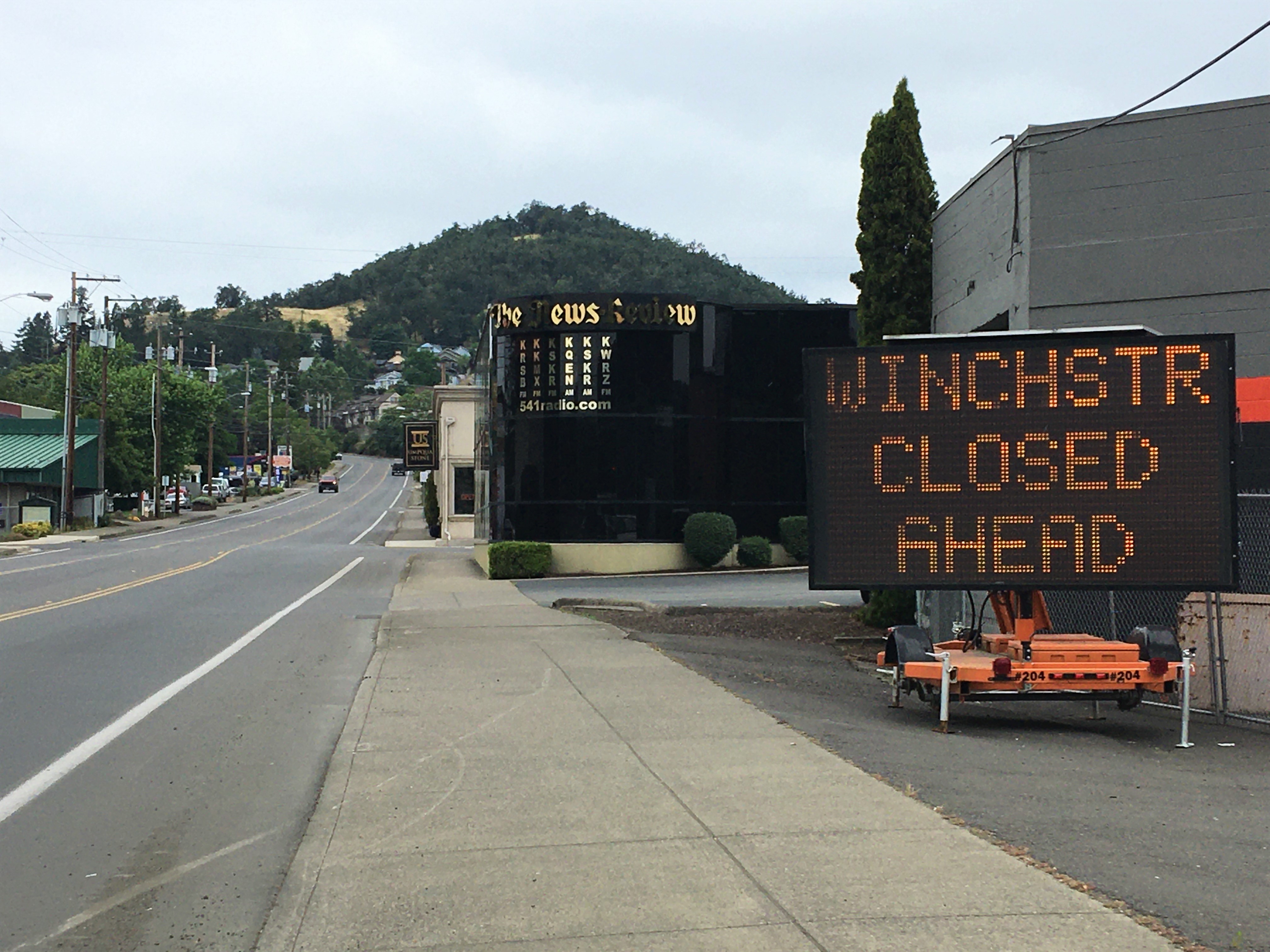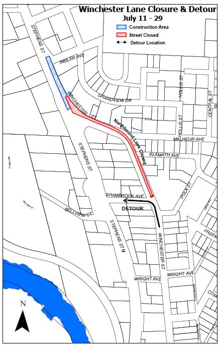 An around-the-clock closure and detour are needed to help traffic safely reroute around the Stephens Street lane closure so two sidewalk ramps can be reconstructed at Imbler Avenue and Stephens Street. Northbound traffic on Winchester Street normally merges onto Stephens Street, aka Oregon Route 99/Oakland-Shady Highway, but the Imbler Avenue ramp construction closures would not allow enough roadway for drivers to safely merge, according to the Public Works Department.